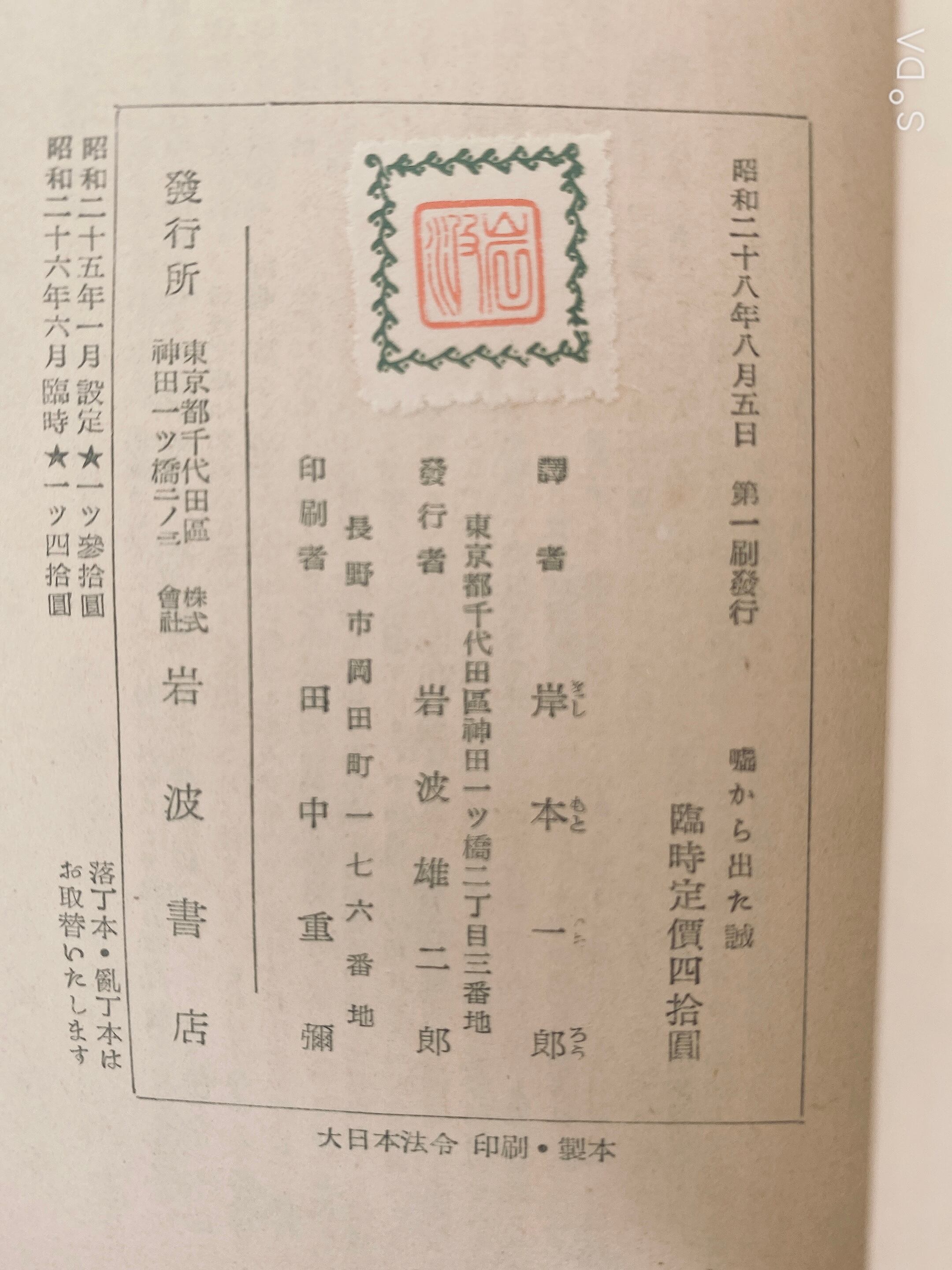 ワイルド『噓から出た誠』岸本一郎譯 岩波書店 昭和28年初版