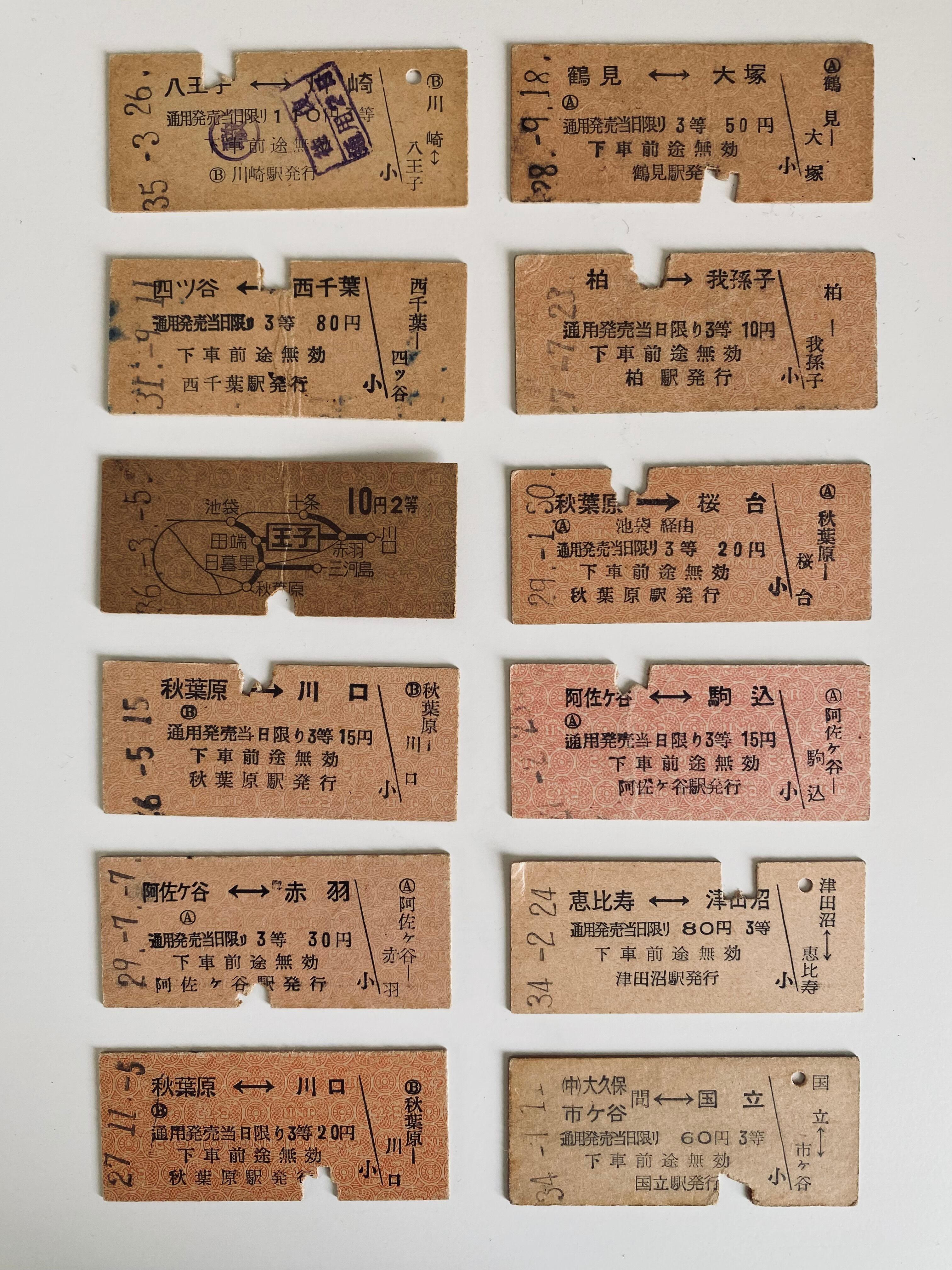 昭和20〜30年代の關東の鉄道切符12點です。