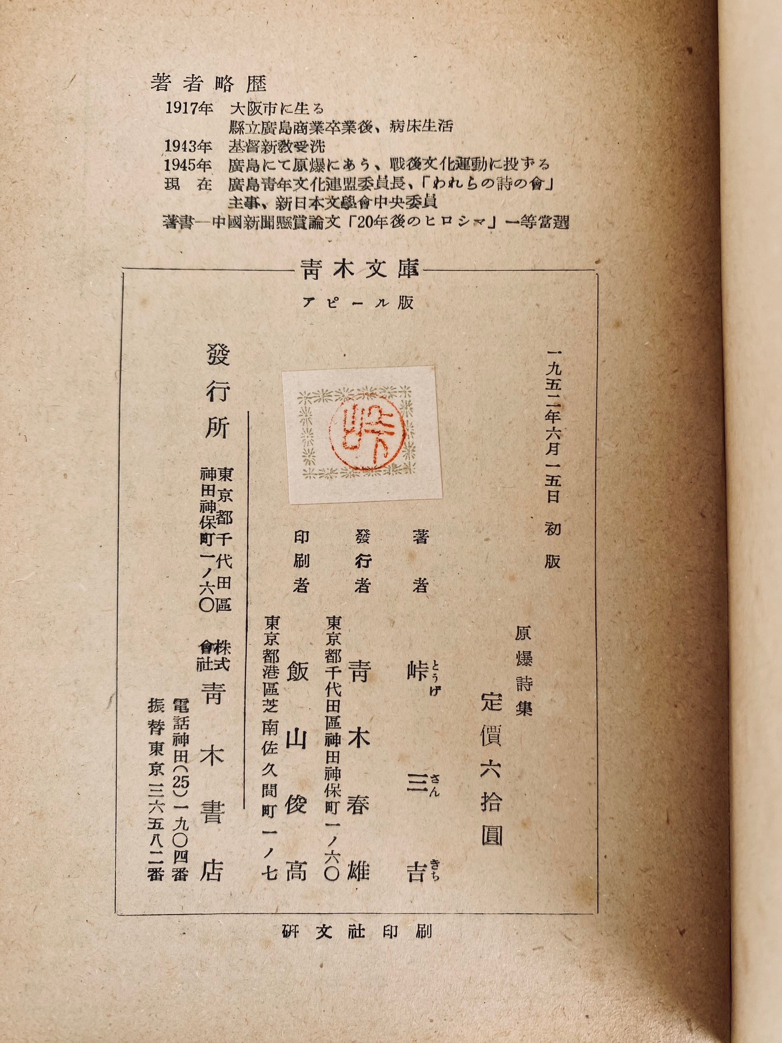峠三吉『原爆詩集』青木書店1952