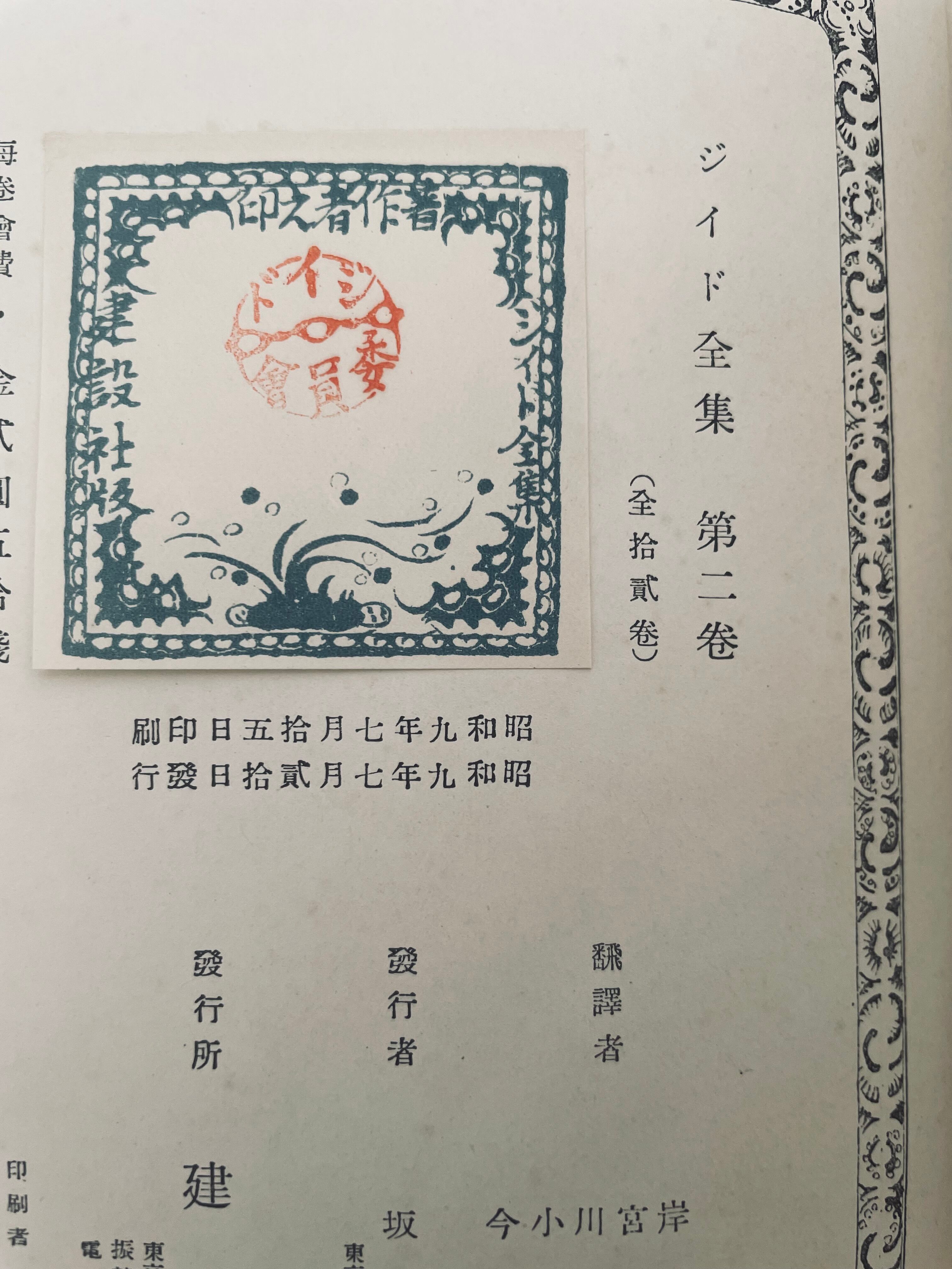 『ジイド全集 第二卷』建設社 昭和9 初版
